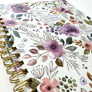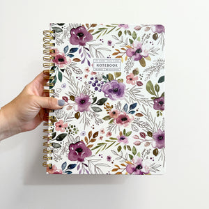 NOTEBOOK: The hardcover Autumn Amethyst Notebook (9"x11.25") features a stunning floral print on the front and back cover, 180 lined pages and a double-sided pocket page in the back with twin-loop spiral binding.