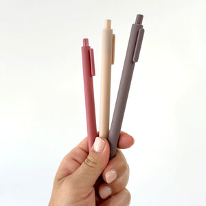 PENS: A set of three ballpoint pens with smooth black ink and a cute, minimalist style in beautiful colors that coordinate beautifully with the stationery set.